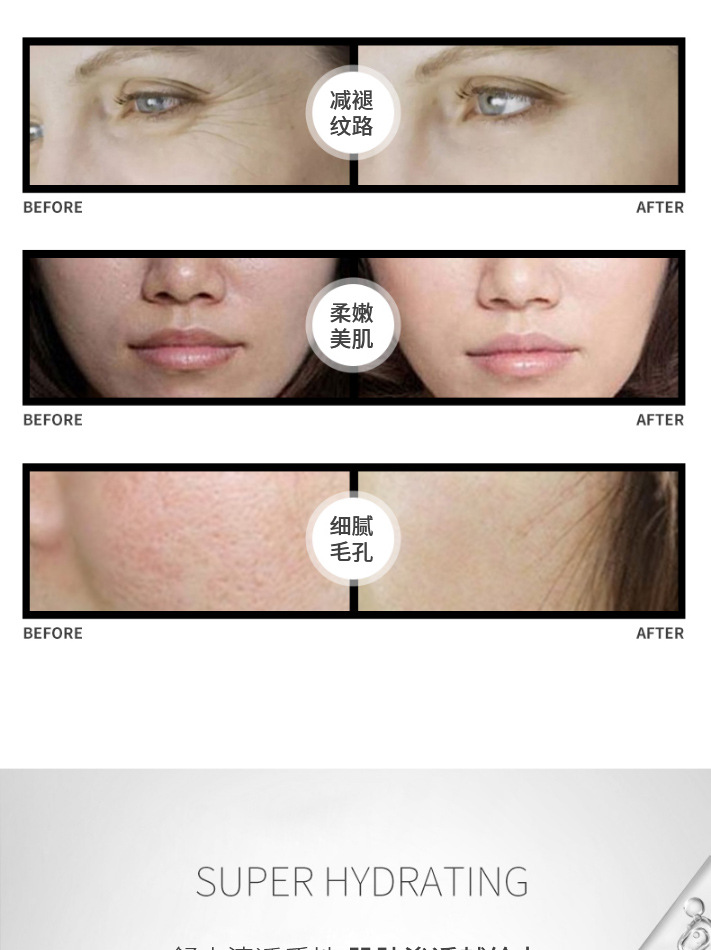 • 功效:美白 补水 保湿 抗衰 修护 深层清洁 提亮肤色 提拉 紧致 锁水 去黑头 抗敏 舒缓 控油 滋养 淡斑 收缩毛孔 隔离 防晒 嫩肤